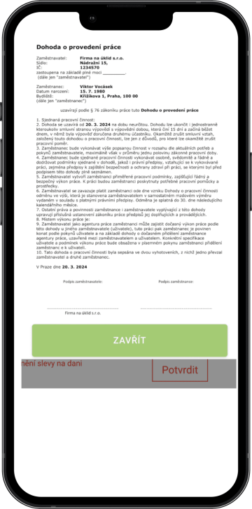 Klademe důraz na bezpečí vás i vašich zaměstnanců. Proto je možné pro podpisy nastavit dvoufázové ověření, abyste měli jistotu, že smlouvu podepsal skutečný člověk.